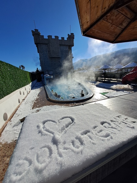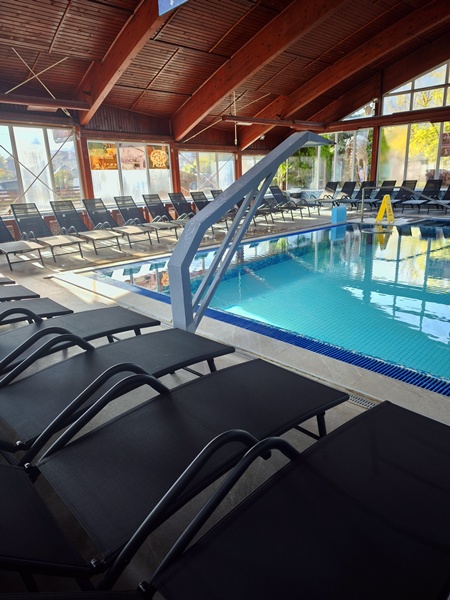 Релаксирайте в басейните с термално-минерална вода с температура от 30℃ до 36℃. Разполагаме с 2 вътрешни басейна и 1 открит басейн. Съставът на водата е особено добър и успешно неутрализира болки в костите, ревматизъм, последствия от травми, както и промени и заболявания по кожата.